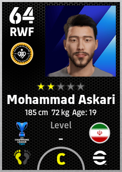 . Mohammad Askari is a Right Wing Forward footballer from Ir Iran who plays for Sepahan Sc in eFootball 2026.