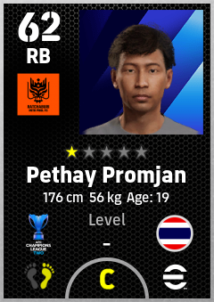 . Pethay Promjan is a Right Back footballer from Thailand who plays for Ratchaburi Fc in eFootball 2026.