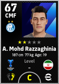 . A. Mohd Razzaghinia is a Center Midfielder footballer from Ir Iran who plays for Esteghlal Fc in eFootball 2026.
