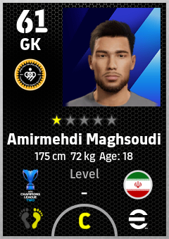 . Amirmehdi Maghsoudi is a Goalkeeper footballer from Ir Iran who plays for Sepahan Sc in eFootball 2026.