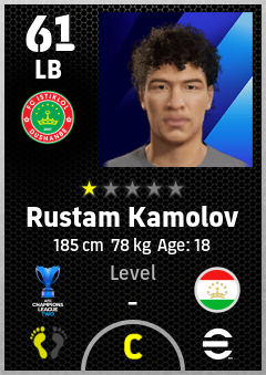 . Rustam Kamolov is a Left Back footballer from Tajikistan who plays for Fc Istiklol Dushanbe in eFootball 2026.