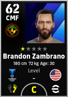 . Brandon Zambrano is a Center Midfielder footballer from United States who plays for Kaya Fc-Iloilo in eFootball 2026.