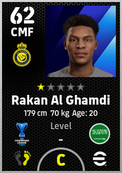 . Rakan Al Ghamdi is a Center Midfielder footballer from Saudi Arabia who plays for Al Nassr Fc in eFootball 2026.