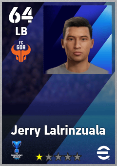. Jerry Lalrinzuala is a Left Back footballer from India who plays for Fc Goa in eFootball 2026.