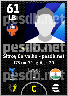 . Sitroy Carvalho is a Left Back footballer from India who plays for Fc Goa in eFootball 2026.