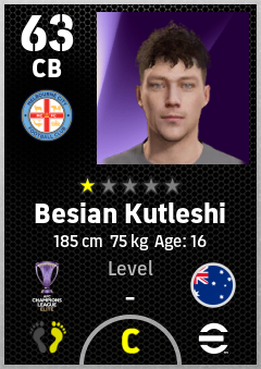 . Besian Kutleshi is a Center Back footballer from Australia who plays for Melbourne City Fc in eFootball 2026.