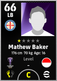 . Mathew Baker is a Left Back footballer from Indonesia who plays for Melbourne City Fc in eFootball 2026.
