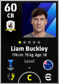 . Liam Buckley is a Center Back footballer from Australia who plays for Tampines Rovers Fc in eFootball 2026.