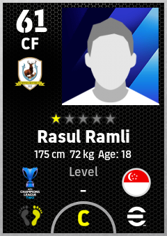 . Rasul Ramli is a Center Forward footballer from Singapore who plays for Tampines Rovers Fc in eFootball 2026.