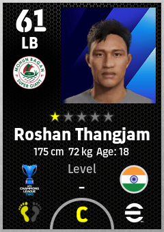 . Roshan Thangjam is a Left Back footballer from India who plays for Mohun Bagan Super Giant in eFootball 2026.