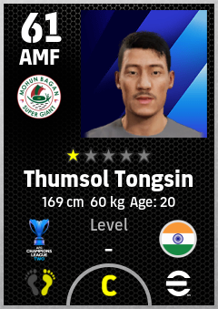 . Thumsol Tongsin is a Attacking Midfielder footballer from India who plays for Mohun Bagan Super Giant in eFootball 2026.