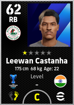 . Leewan Castanha is a Right Back footballer from India who plays for Mohun Bagan Super Giant in eFootball 2026.