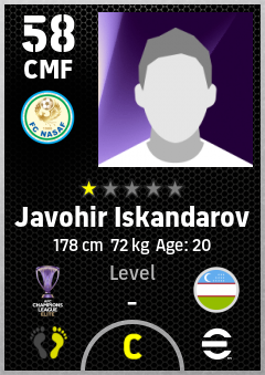 . Javohir Iskandarov is a Center Midfielder footballer from Uzbekistan who plays for Fc Nasaf in eFootball 2026.