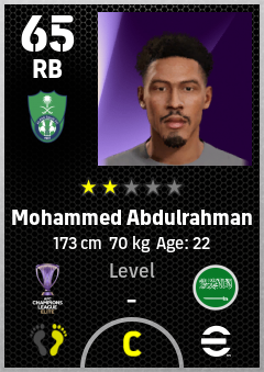 . Mohammed Abdulrahman is a Right Back footballer from Saudi Arabia who plays for Al Ahli Saudi Fc in eFootball 2026.