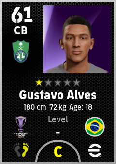 . Gustavo Alves is a Center Back footballer from Brazil who plays for Al Ahli Saudi Fc in eFootball 2026.