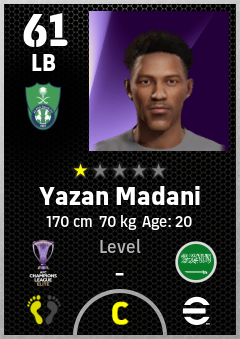 . Yazan Madani is a Left Back footballer from Saudi Arabia who plays for Al Ahli Saudi Fc in eFootball 2026.