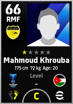 . Mahmoud Khrouba is a Right Midfielder footballer from Jordan who plays for Al Hussein Sc in eFootball 2026.