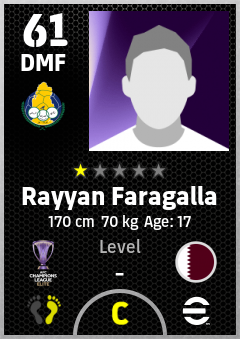 . Rayyan Faragalla is a Defensive Midfielder footballer from Qatar who plays for Al Gharafa Sc in eFootball 2026.
