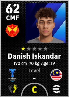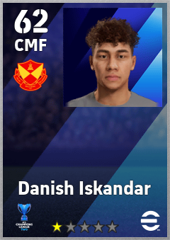 . Danish Iskandar is a Center Midfielder footballer from Malaysia who plays for Selangor Fc in eFootball 2026.