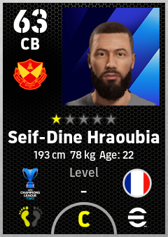 . Seif-Dine Hraoubia is a Center Back footballer from France who plays for Selangor Fc in eFootball 2026.