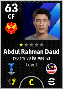 . Abdul Rahman Daud is a Center Forward footballer from Malaysia who plays for Selangor Fc in eFootball 2026.