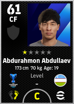 . Abdurahmon Abdullaev is a Center Forward footballer from Uzbekistan who plays for Fc Andijan in eFootball 2026.