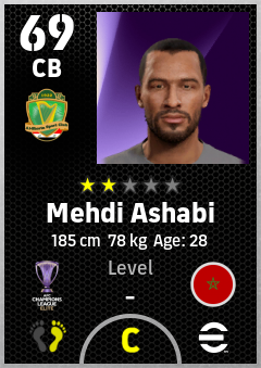 . Mehdi Ashabi is a Center Back footballer from Morocco who plays for Al Shorta Sc in eFootball 2026.