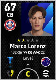 . Marco Lorenz is a Center Back footballer from New Zealand who plays for Eastern Sc in eFootball 2026.