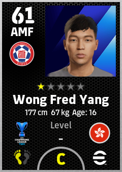 . Wong Fred Yang is a Attacking Midfielder footballer from Hong Kong, China who plays for Eastern Sc in eFootball 2026.