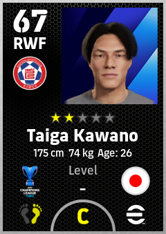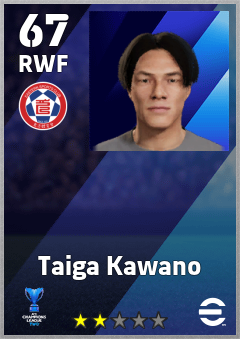 . Taiga Kawano is a Right Wing Forward footballer from Japan who plays for Eastern Sc in eFootball 2026.