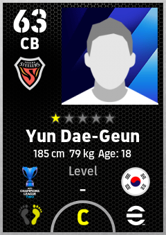 . Yun Dae-Geun is a Center Back footballer from Korea Republic who plays for Fc Pohang Steelers in eFootball 2026.