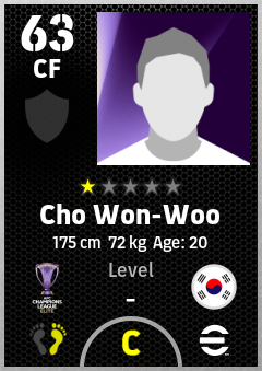. Cho Won-Woo is a Center Forward footballer from Korea Republic who plays for Gangwon Fc in eFootball 2026.
