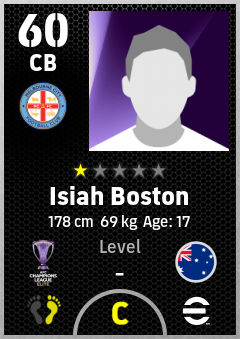 . Isiah Boston is a Center Back footballer from Australia who plays for Melbourne City Fc in eFootball 2026.