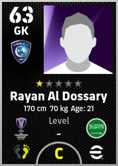 . Rayan Al Dossary is a Goalkeeper footballer from Saudi Arabia who plays for Al Hilal Sfc in eFootball 2026.