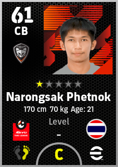 . Narongsak Phetnok is a Center Back footballer from Thailand who plays for Nakhonratchasima Fc in eFootball 2026.