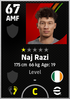. Naj Razi is a Attacking Midfielder footballer from Republic Of Ireland who plays for Free in eFootball 2026.