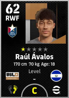 . Raúl Ávalos is a Right Wing Forward footballer from El Salvador who plays for North Carolina Fc in eFootball 2026.