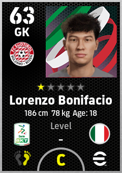 . Lorenzo Bonifacio is a Goalkeeper footballer from Italy who plays for Südtirol Br in eFootball 2026.