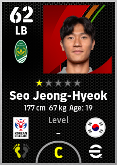. Seo Jeong-Hyeok is a Left Back footballer from Korea Republic who plays for Jeonju G in eFootball 2026.