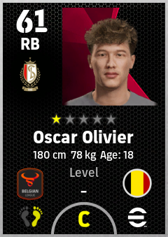 . Oscar Olivier is a Right Back footballer from Belgium who plays for Liège Rw in eFootball 2026.