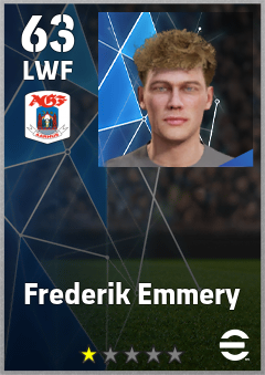 . Frederik Emmery is a Left Wing Forward footballer from Denmark who plays for Aarhus Hb in eFootball 2026.