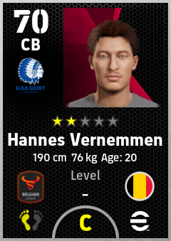 . Hannes Vernemmen is a Center Back footballer from Belgium who plays for Gent Bw in eFootball 2026.