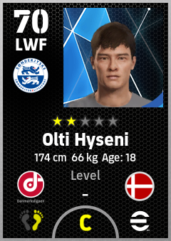 . Olti Hyseni is a Left Wing Forward footballer from Denmark who plays for Haderslev Hb in eFootball 2026.