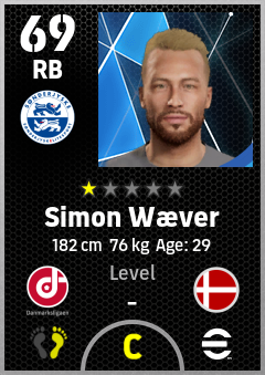 . Simon Wæver is a Right Back footballer from Denmark who plays for Haderslev Hb in eFootball 2026.