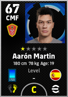 . Aarón Martin is a Center Midfielder footballer from Spain who plays for Miranda De Ebro Rn in eFootball 2026.