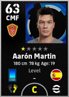. Aarón Martin is a Center Midfielder footballer from Spain who plays for Miranda De Ebro Rn in eFootball 2026.