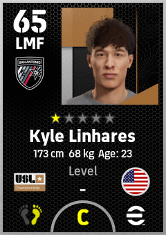 . Kyle Linhares is a Left Midfielder footballer from United States who plays for San Antonio Fc in eFootball 2026.