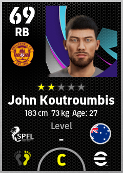 . John Koutroumbis is a Right Back footballer from Australia who plays for Motherwell Fc in eFootball 2026.
