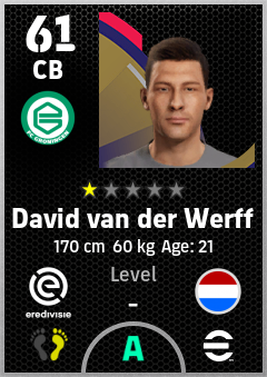 . David Van Der Werff is a Center Back footballer from Netherlands who plays for Fc Groningen in eFootball 2026.