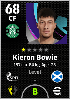 . Kieron Bowie is a Center Forward footballer from Scotland who plays for Hibernian Fc in eFootball 2026.